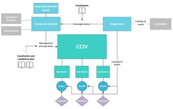 CCIV structure is a company limited by shares, modelled on the United Kingdom's Open-Ended Investment Companies (OEIC) regime. The CCIV will need to be registered with ASIC and can be closed ended or open ended. Sub-funds of a CCIV are registered with ASIC but are not proposed to be separate legal entities.